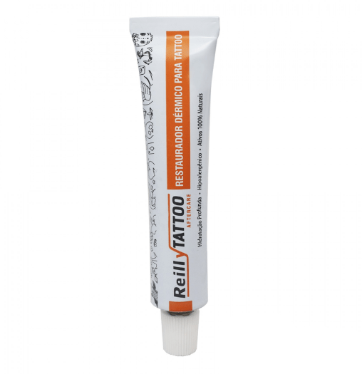 Restaurador dérmico Reilly Tattoo – esse creme particularmente é o nosso preferido e é o que vendemos para nossos clientes no studio. Com ele já no segundo dia não precisa usar plástico film, ele deixa a área da tatuagem bem sequinha e ao mesmo tempo bem hidratada, a aplicação é bem tranquila, não é nem muito grudenta e nem óleosa, o preço dela é bem acessível que é mais um ponto forte.